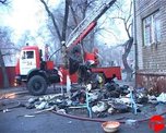 Пожар в захламленной квартире на пятом этаже. Из-за гор мусора, которые складировались в помещении, огнеборцы не могли войти через парадный вход. К очагу возгорания они пробирались по автолестнице, подав её к балкону.