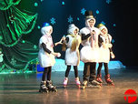 Новогодний подарок приготовили творческие коллективы молодежного центра 'Горизонт'. На сцене поставили мюзикл с участием детей. Сценарий и почти все произведения собственного сочинения.